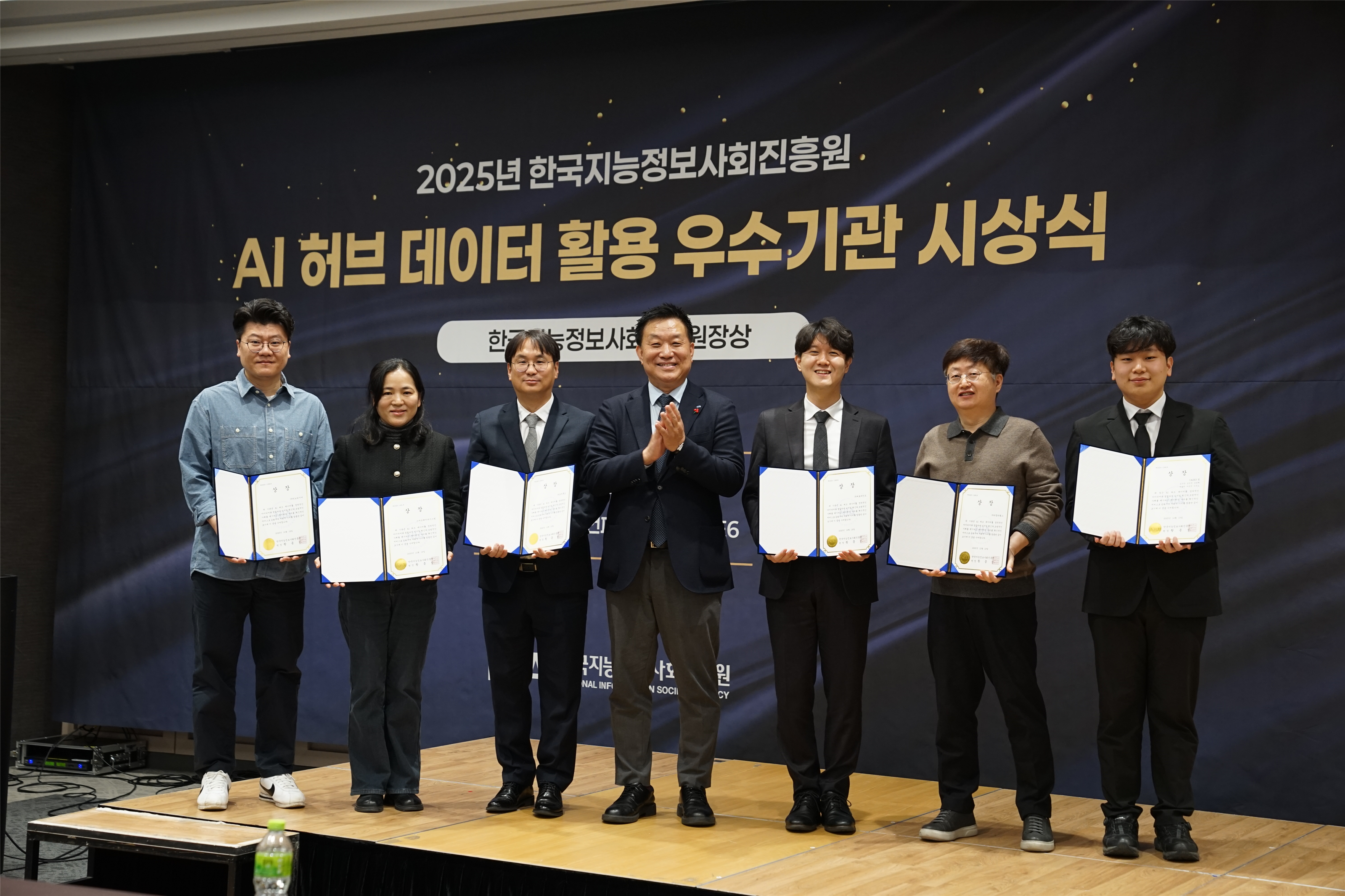 □ 한국지능정보사회진흥원(원장 황종성, 이하 진흥원)은 지난 12월 19일 서울 코엑스에서 2025 AI 허브 데이터 활용 우수 사례를 선정하고 기업 시상식을 개최하였다고 밝혔다.