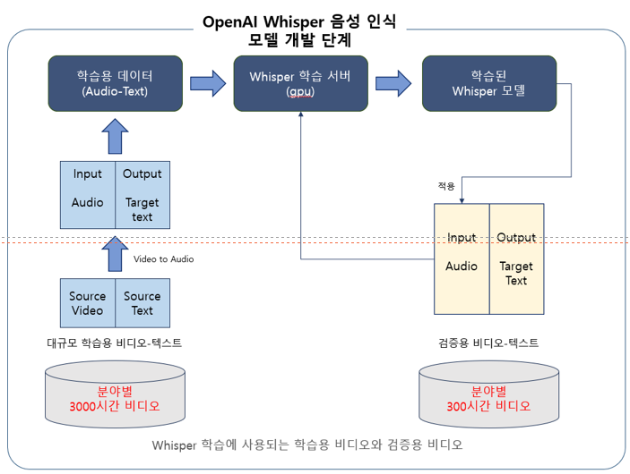 질의 쿼리를 음성인식으로 인식하기 위해 질의어 음성인식 학습을 위해 검증용 말뭉치와 시험용 말뭉치를 전체 말뭉치의 10%로 제시한다.음성인식 학습모델 학습 검증 시험 개요 질의어 음성 학습 시 모델 성과 평가 및 비교 모델 학습 완료 후 테스트 CER, WER 필요문장 80% 10% 10%